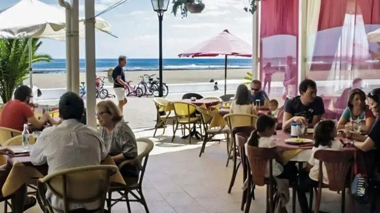 La terraza de Erik.it destaca por su excelente ubicación, que permite disfrutar de la vista de la playa de Guacimeta y del ambiente animado de Playa Honda, donde ciclistas, paseantes y patinadores contribuyen a una atmósfera vibrante. La terraza está perfectamente orientada para evitar los vientos fuertes de la zona, ofreciendo un ambiente cómodo y agradable.
